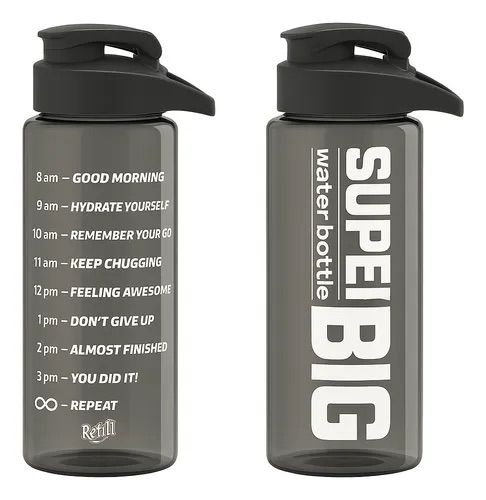 Botella Medidora Motivacional – 1100 ml 🖤Hidratate con estilo y motivación.🫧 Capacidad: 1100 ml🖤 Color: Negro🥤 Material: Plástico resistenteIdeal para llevar a todos lados y acompañarte en tu día.